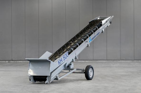 The KrampeHarex KH 500 conveyor belt is a powerful dosing device for problem-free dosing of steel fibres. A continuous mass flow avoids surge dosing and thus the so-called steel fibre yolks. Even difficult fiber geometries can be metered. Thanks to its tires, the KH 500 can be moved flexibly in ready-mix concrete plants or on construction sites.